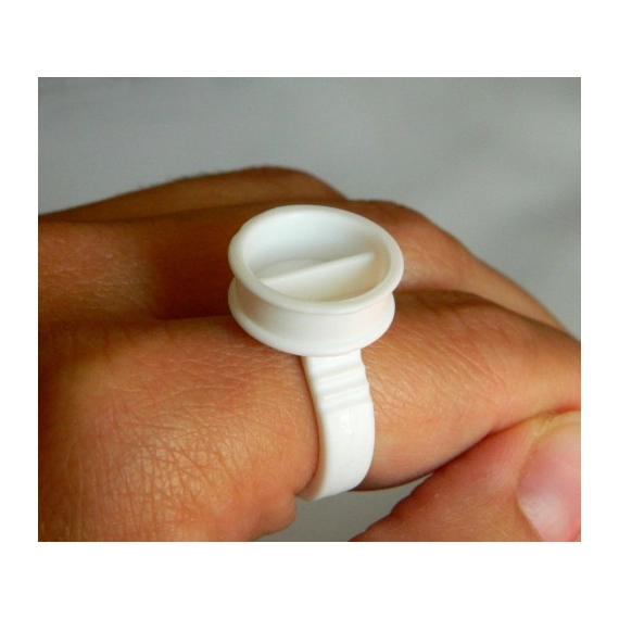 Kis méretű, rugalmas anyagú, műanyag, ujjra húzható ragasztótartó. A műszempilla ragasztó felrázása után cseppents a gyűrűbe.