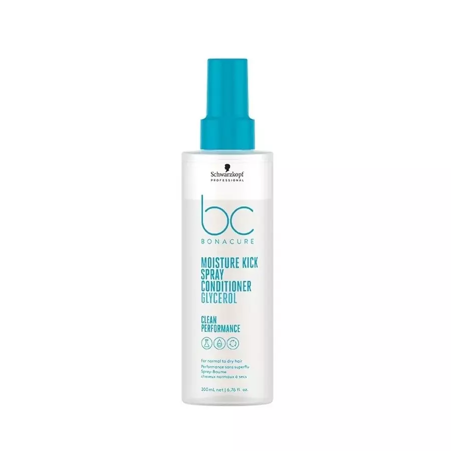 A dehidratált hajnak nincs fénye és rugalmassága, és jellemző rá, hogy rakoncátlan és törékeny. A glicerinnel dúsított Schwarzkopf Professional BC Bonacure CP Moisture Kick kondicionáló spray krémes és vizes fázist ötvöz, amely felrázáskor könnyű emulzióvá alakul. A hajszálaknak egy adag nedvességet biztosít, és segít kisimítani a felszínüket.